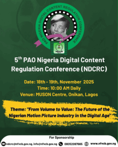 The National Film and Video Censors Board is the regulatory body set up by Act No.85 of 1993 to regulate films and video industry in Nigeria. The Board is empowered by law to classify all films and videos whether imported or produced locally. It is also the duty of the Board to register all films and video outlets across the country and to keep a register of such registered outlets among other functions such registered outlets among other functions across the country and to keep a register of such registered outlets among other functions.